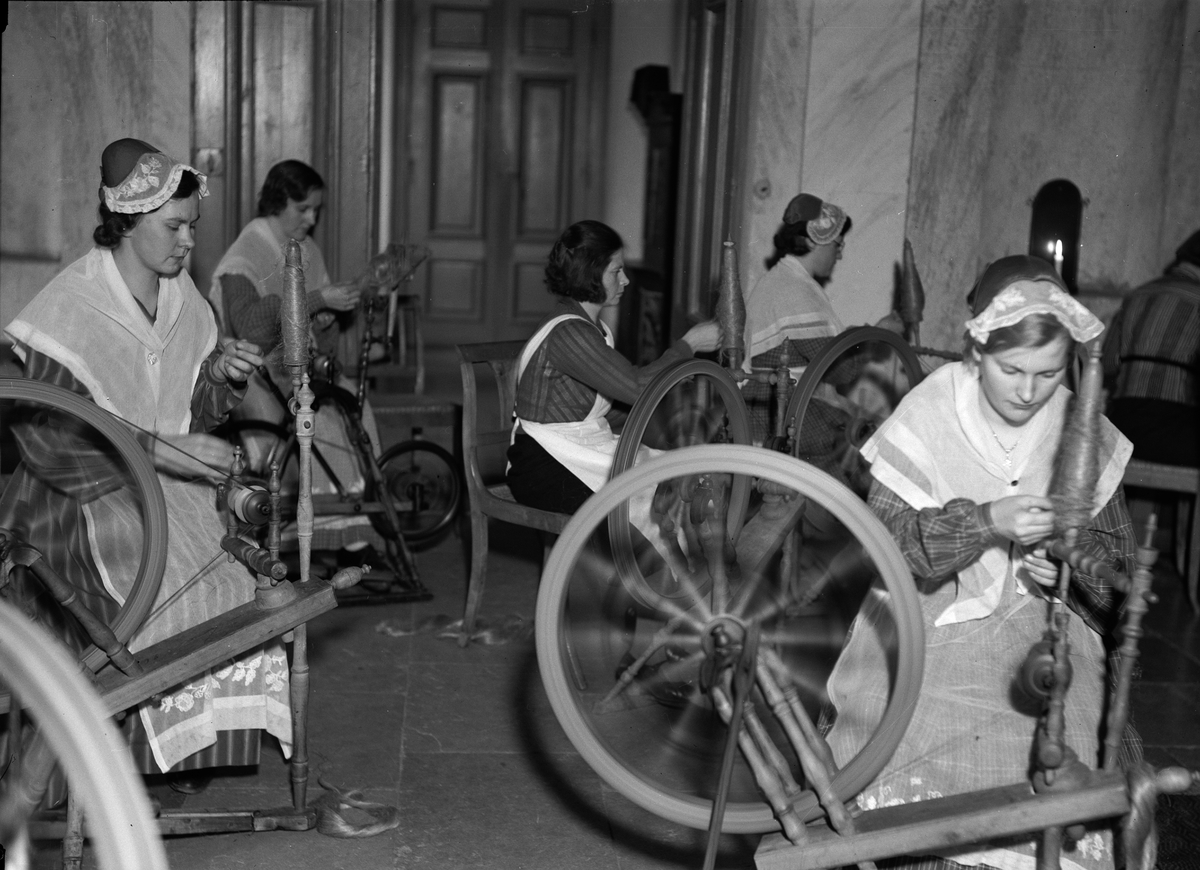 Deltagare i Jordbrukare-Ungdomens Förbunds linspånadstävling på Salsta slott