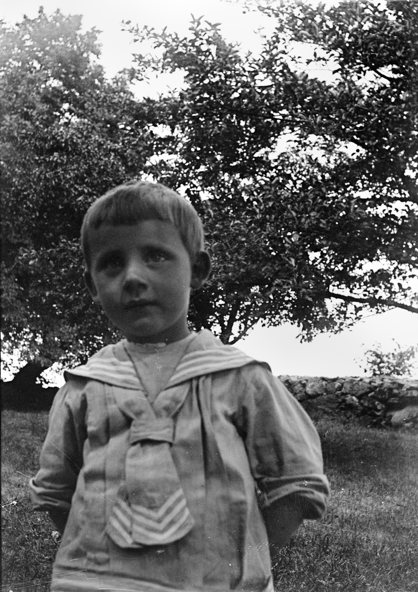 Sannolikt Alf Liljefors ute på gården, i Sverige