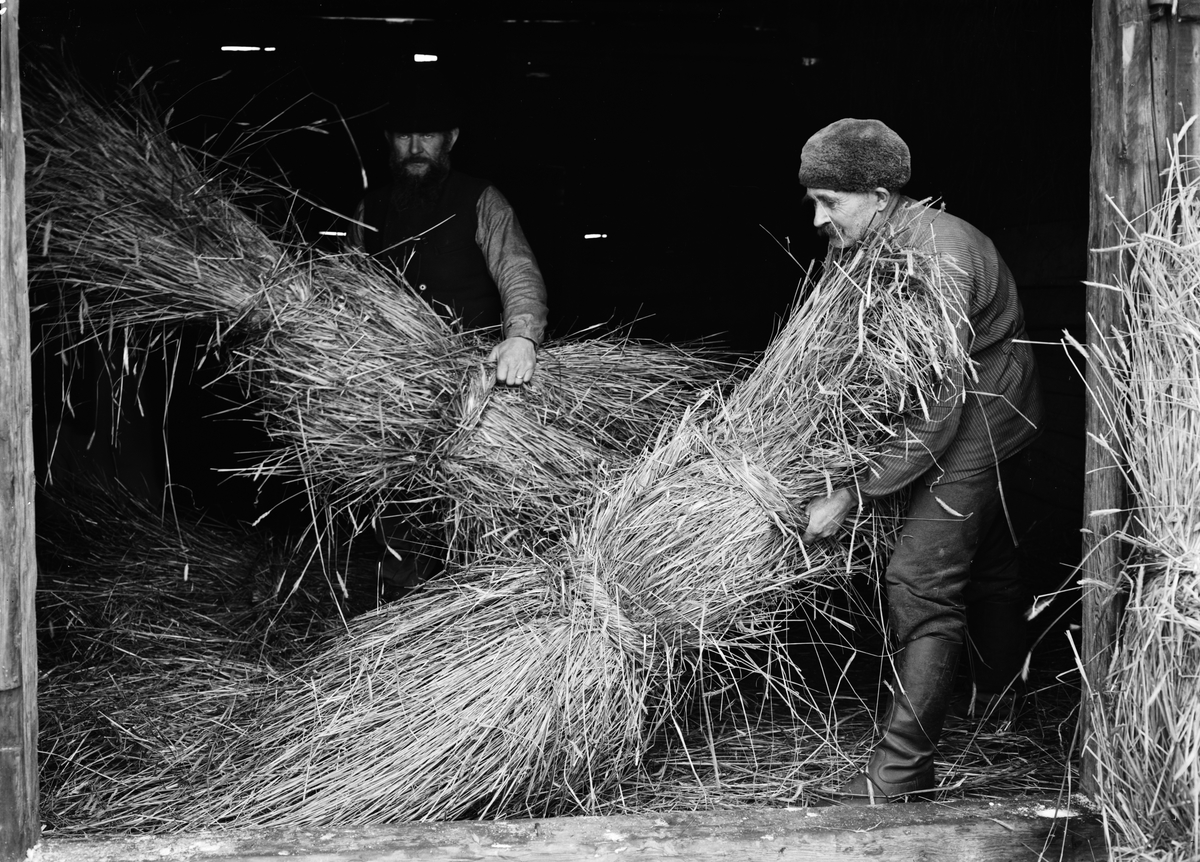 Bindning av halmkärvar, Villsberga, Biskopskulla socken, Uppland