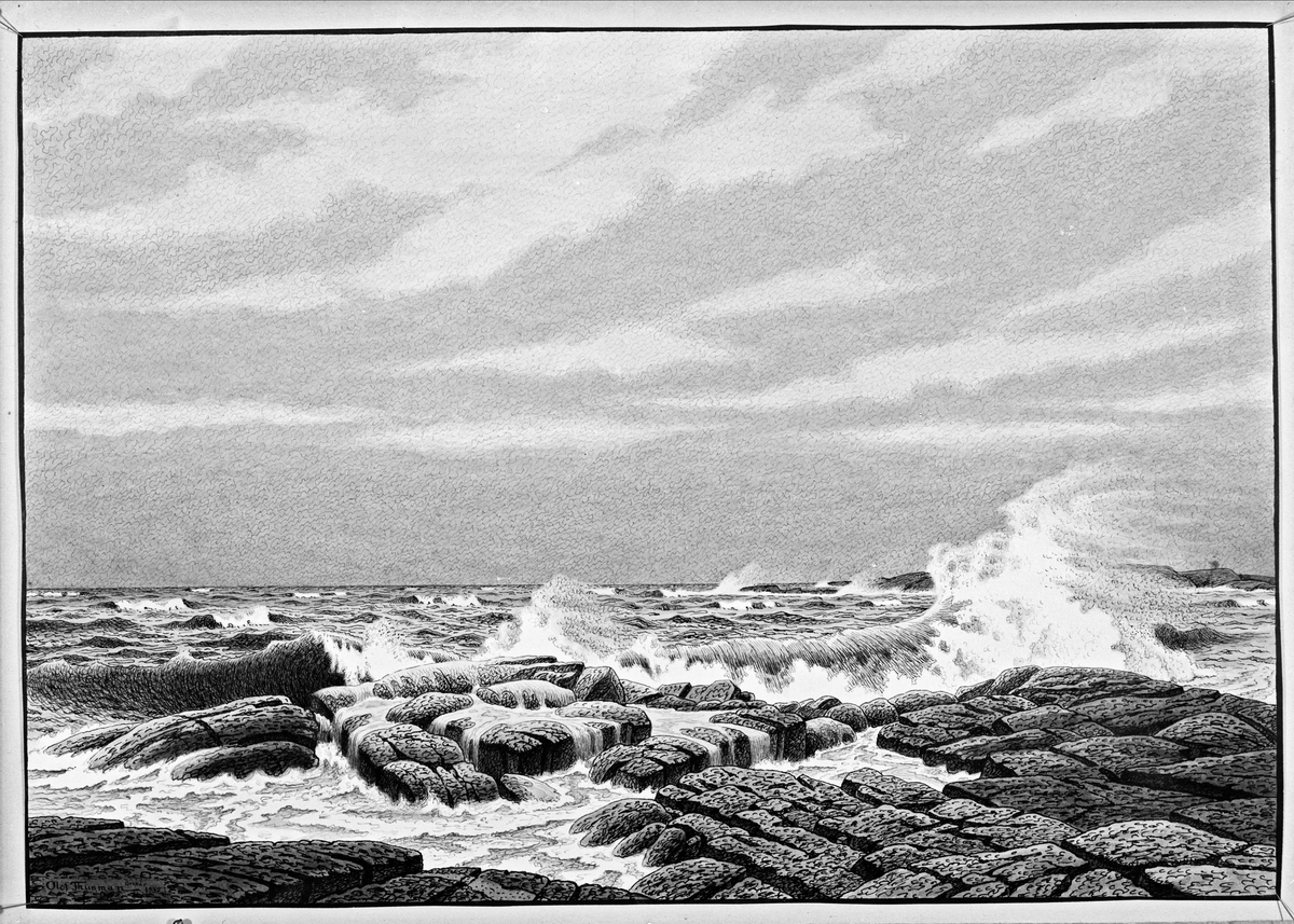 Konstverk - akvarell med motiv från Örskär, Gräsö socken, Uppland, signerad 1937 av konstnären Olof Thunman