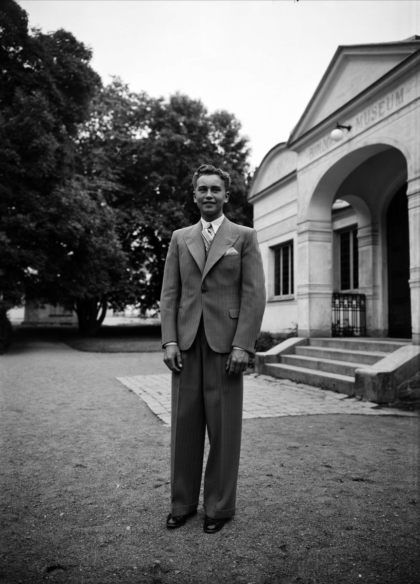 Ung man utanför Biologiska museet, Skolparken, Uppsala 1937