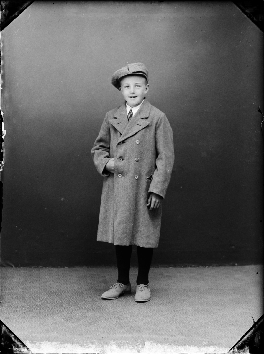 Barnporträtt - en pojke med skärmmössa och rock, Östhammar, Uppland