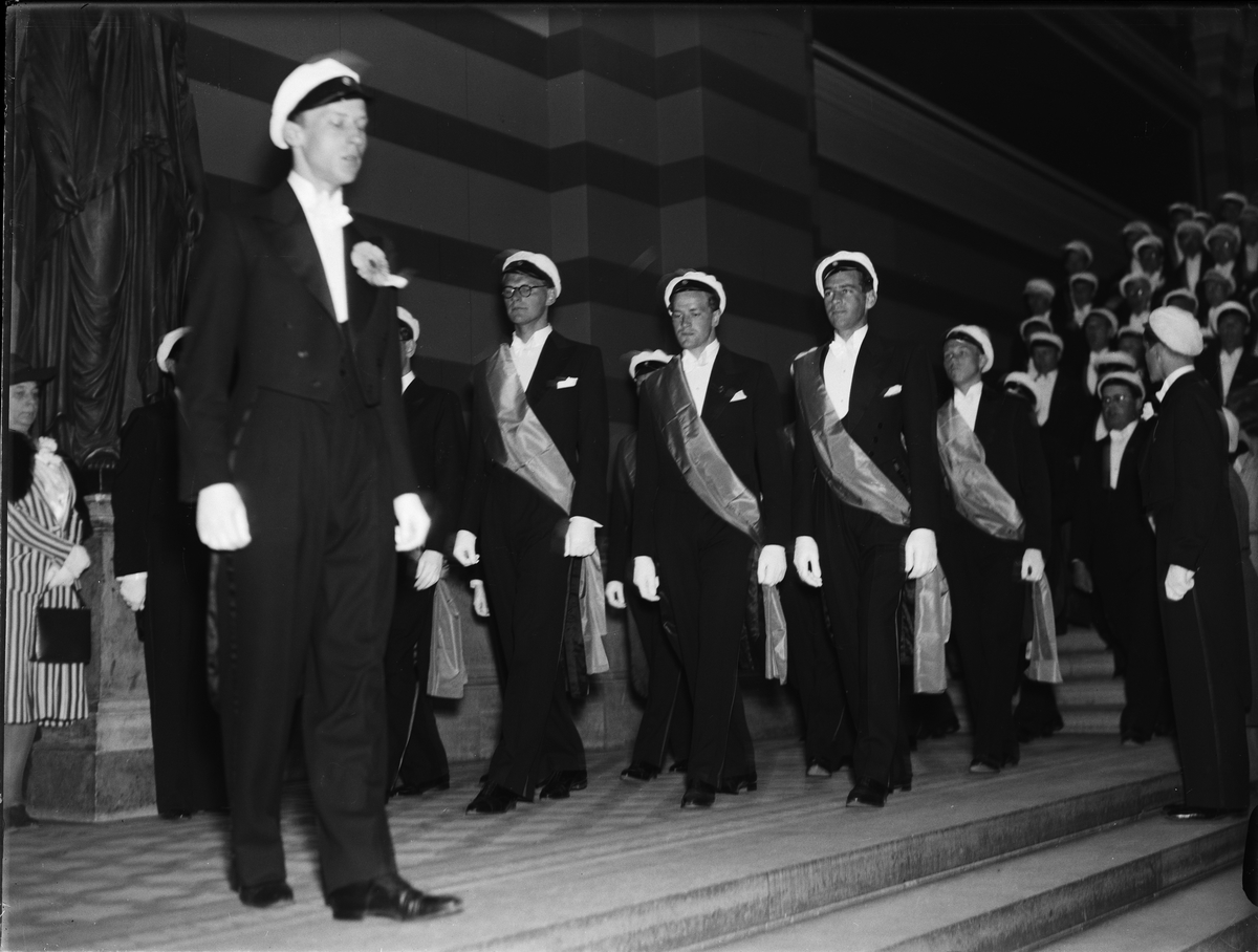 "Vårfesten i Upsala nordiskt betonad" - 'Trappmarschen' i Universitetshuset, Uppsala 1942