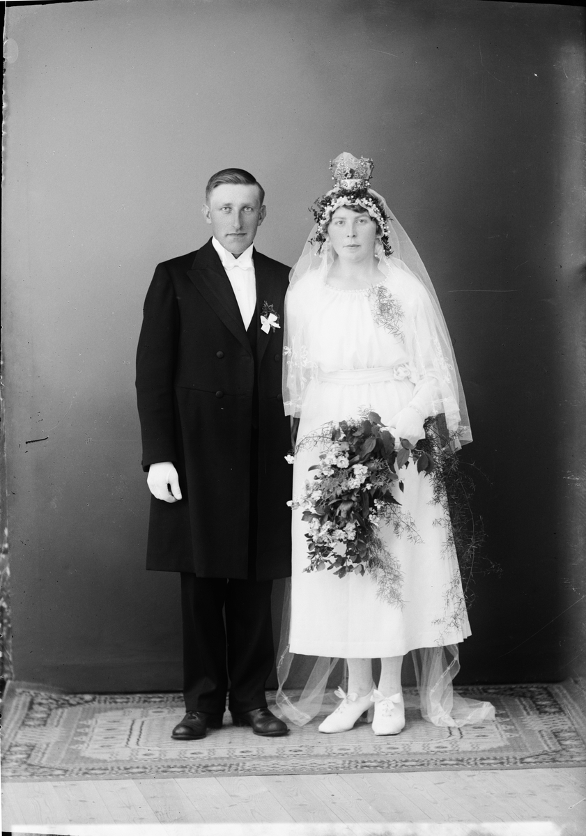 Brudparet Mattsson från Duderö, Börstil socken, Uppland 1921
