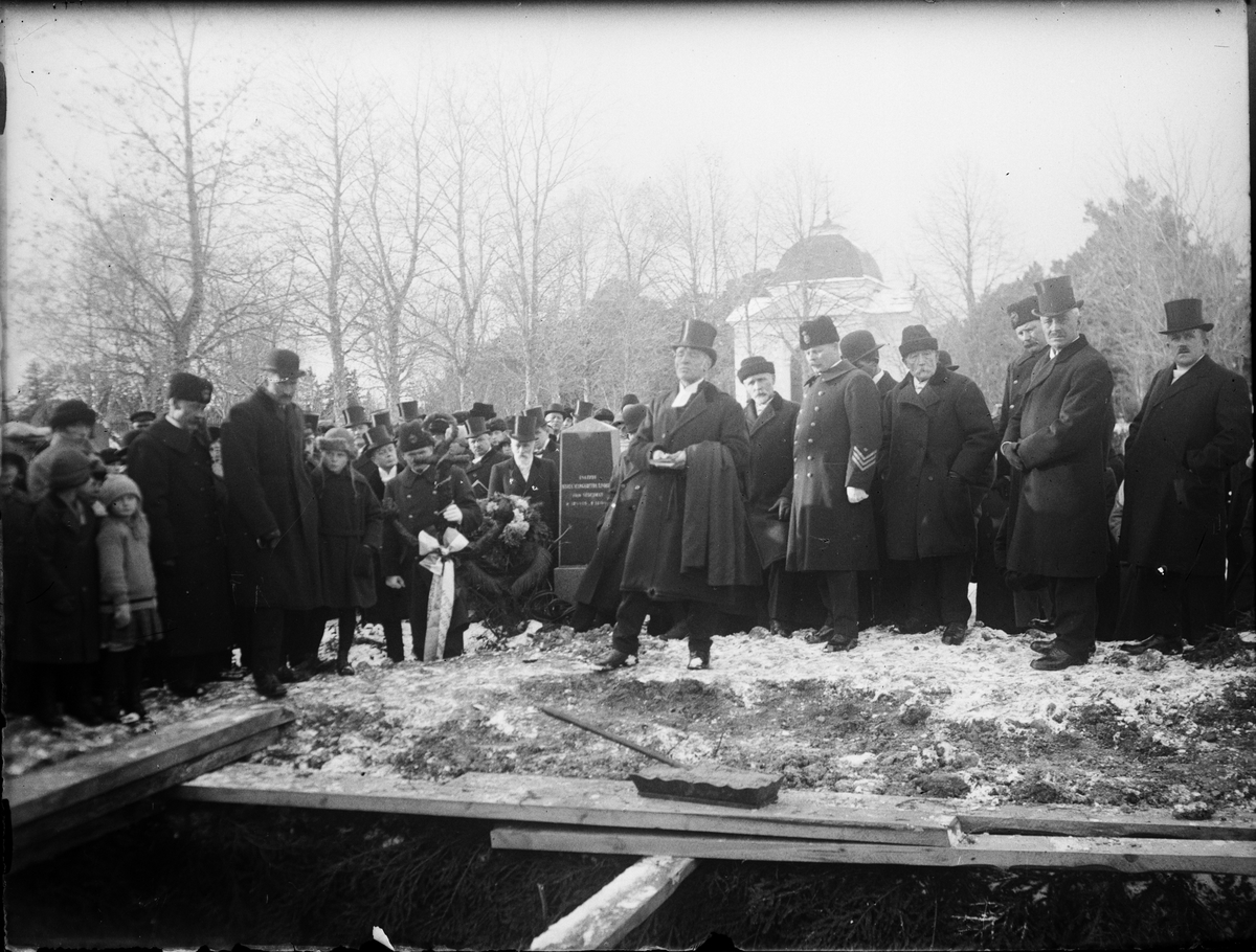 Begravning på Öregrunds kyrkogård. Begravning av sjömän som drunknade då den Holländske ångaren Cornelis gick under utanför Gräsö, Uppland 1922