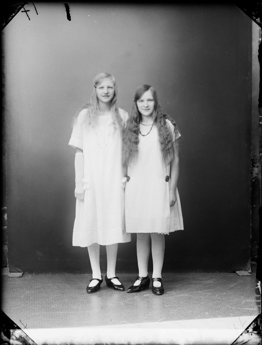 Ateljéporträtt - två flickor, Östhammar, Uppland