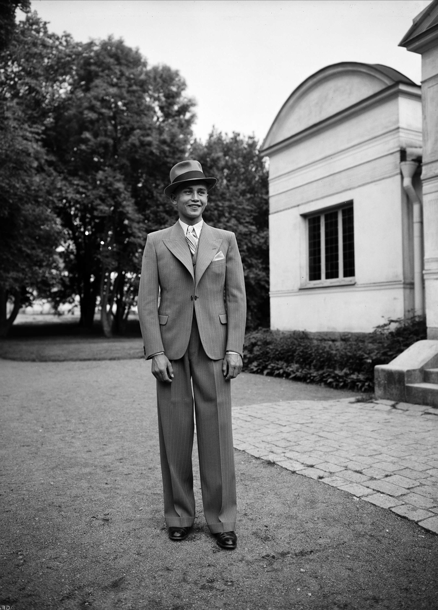 Ung man utanför Biologiska museet, Skolparken, Uppsala 1937