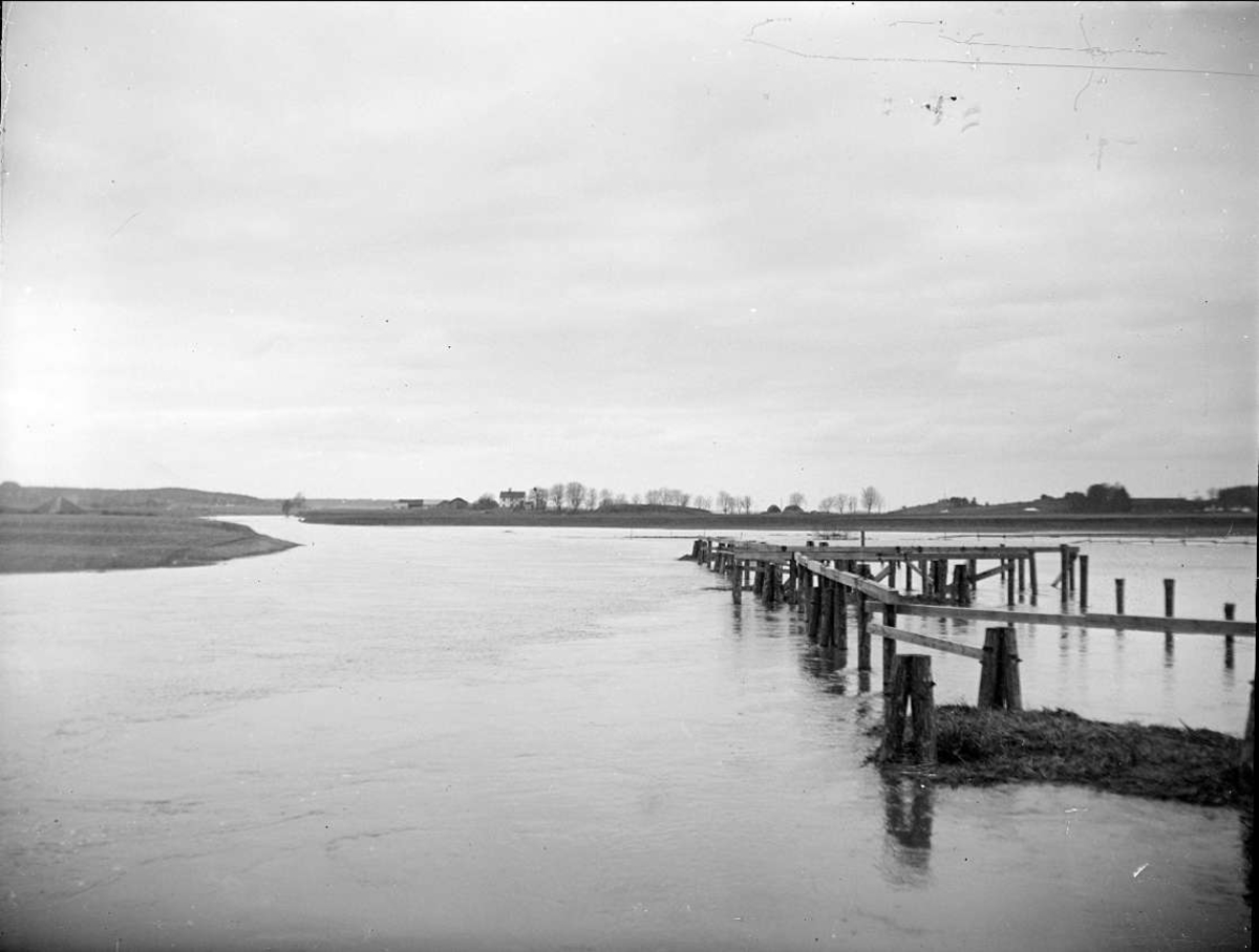 Vy över Fyrisån med pålar för Nya kallbadhuset, Svartbäcken
