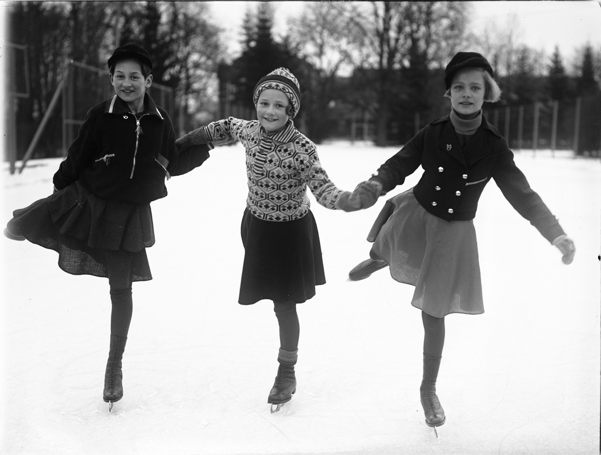 Flickorna Elma Andersson, Marion Berglund och Birgit Edberg tränar på Studenternas Idrottsplats inför svenska juniormästerskapet i konståkning