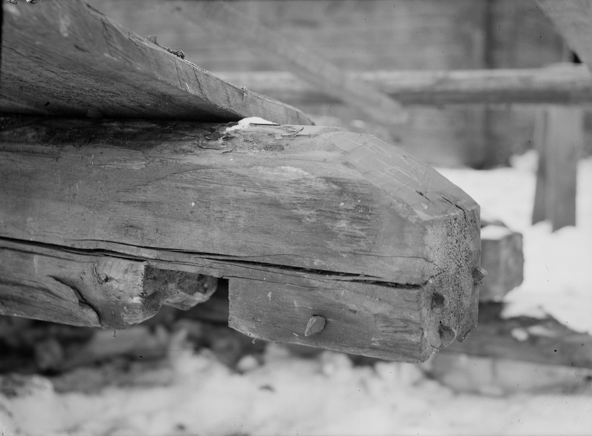 Timmerkonstruktion på Nyvlastugan - nu på friluftsmuseet Disagården - på ursprunglig plats.
