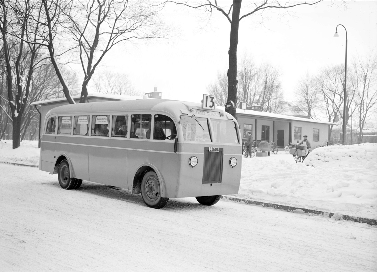 Stadsbuss utanför Uppsala busstation, Järnvägsområdet, Kungsgatan, Uppsala 1937