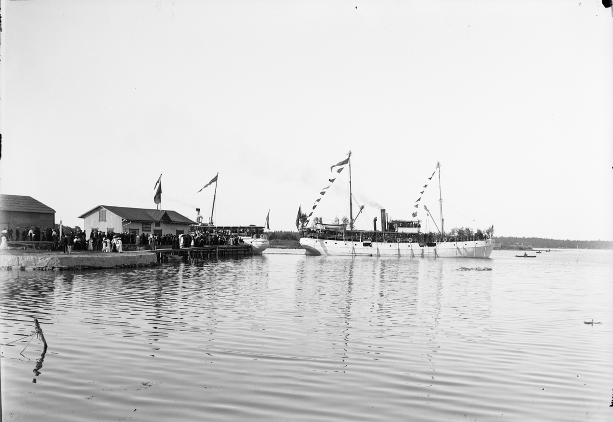 Hamnen med ångfartygen Östhammar I och Östhammar II, Uppland 1900