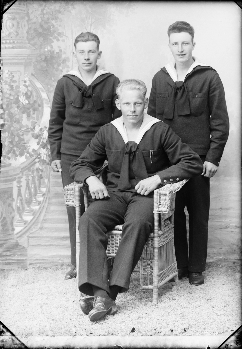 Tre män i sjömansuniform från Simundö, Börstils socken, Uppland