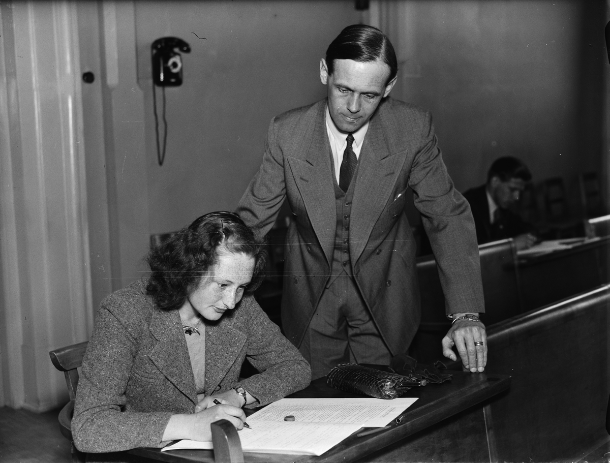 Docent Allan Jansson övervakar de tävlande i nutidsorienteringen på Högre Allmänna Läroverket