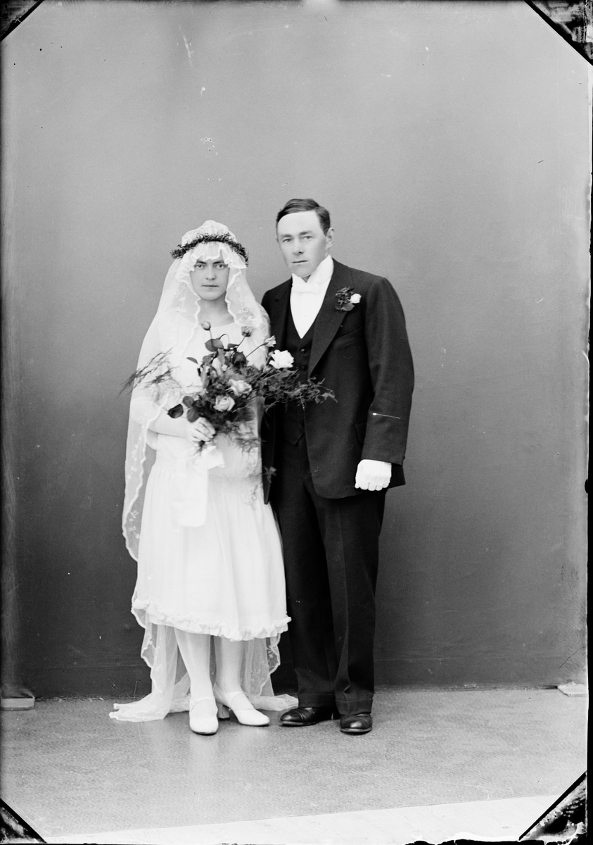 Brudparet Söderman från Sund, Börstil socken, Uppland 1927