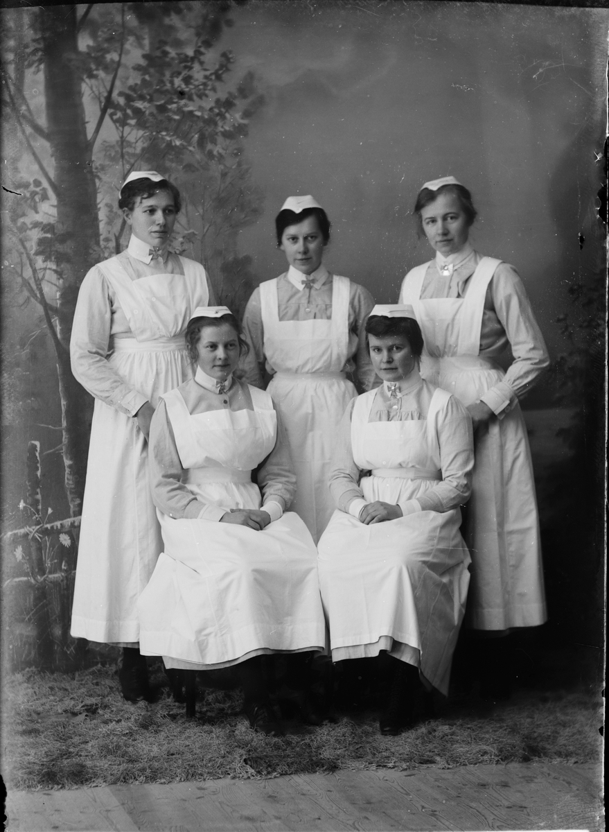 Fem kvinnor i sjukvårdsuniform, Östhammar, Uppland