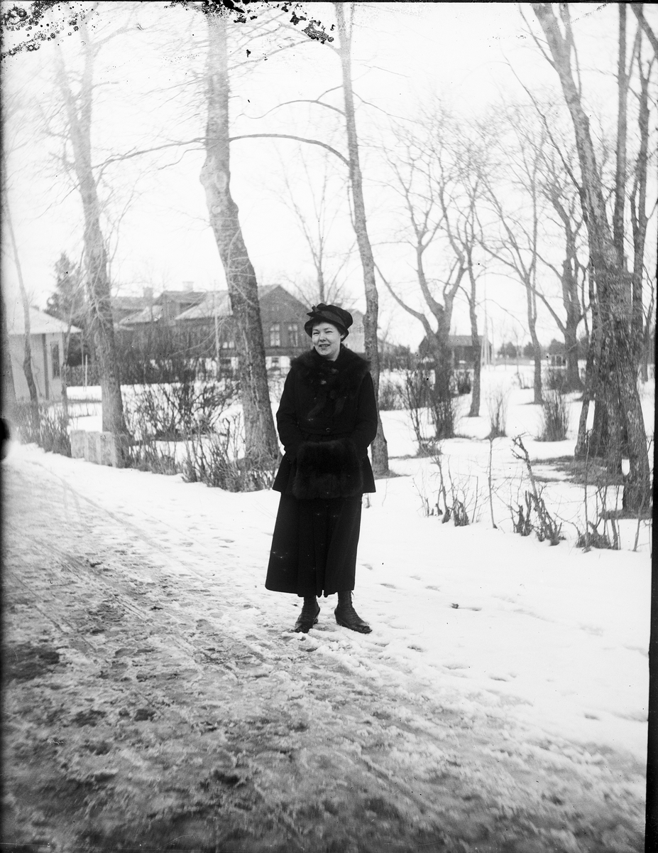 Kvinna i vinterkläder, Stora Nygan, Östhammar, Uppland