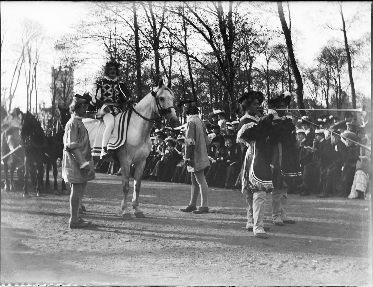 Ryttare med häst och män som blåser i horn, Carolinaparken, Uppsala