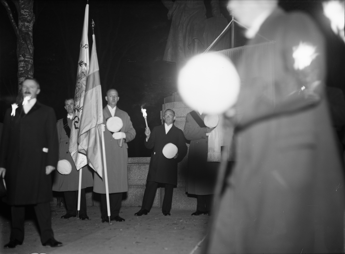Landshövding Sigfrid Linnér hyllar Gunnar Wennerberg när Upplands Sångarförbund firade 25-årsjubileum, Slottsbacken