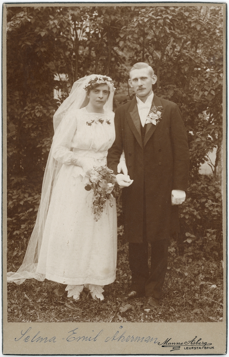 Kabinettsfotografi - brudparet Selma och Emil Åkerman, Lövstabruk 1920-tal