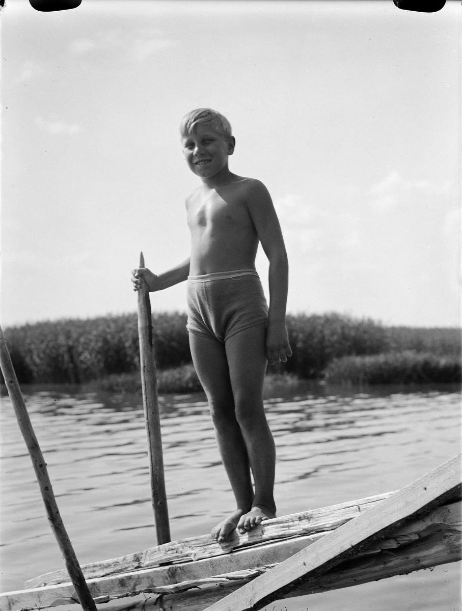 Pojke vid Mälarens strand på SMK Uppsalas sommarutflykt till Fredrikslunds gård