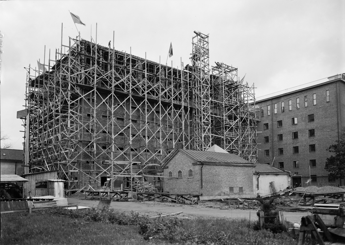 Upsala Ångqvarns AB:s stora mjölsilosbygge, kvarteret Ångkvarnen, Uppsala september 1941