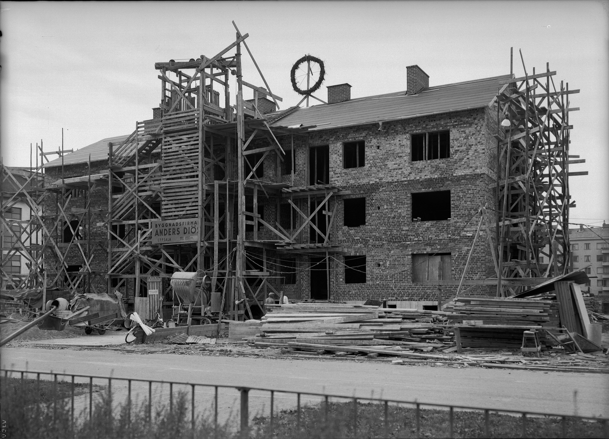 Taklagskrans på flerbostadshus för tjänstemän vid Nymans Verkstäder, S:t Persgatan, Kvarngärdet