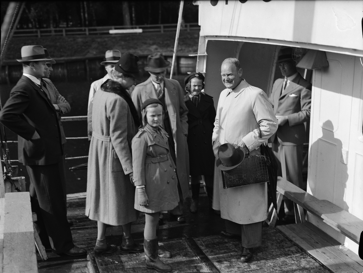 Ångfartyget Stockholm i Uppsala hamn med passagerare från Upsala Ångqvarns AB på utflykt till Skoklosters slott