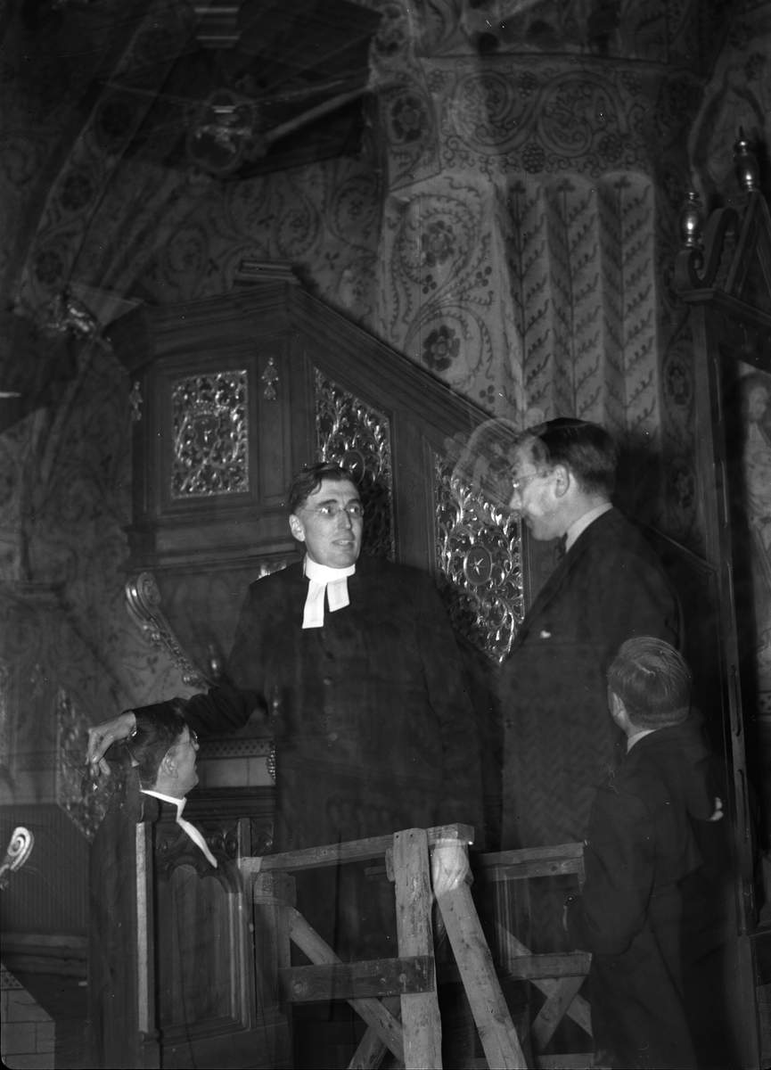 Kyrkoherde C W Palm och kantor Th M Jansson i det rökfyllda kyrkorummet