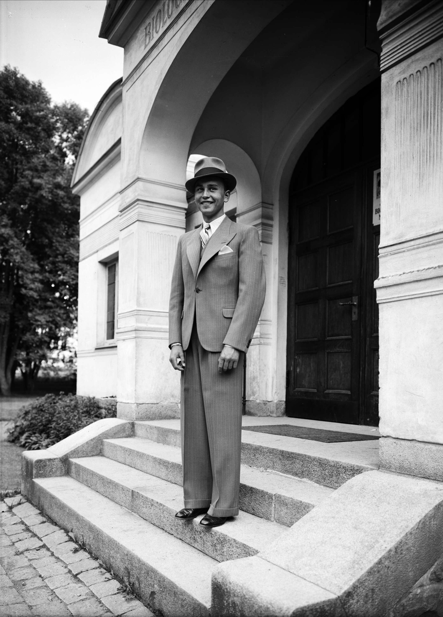 Ung man utanför Biologiska museet, Skolparken, Uppsala 1937