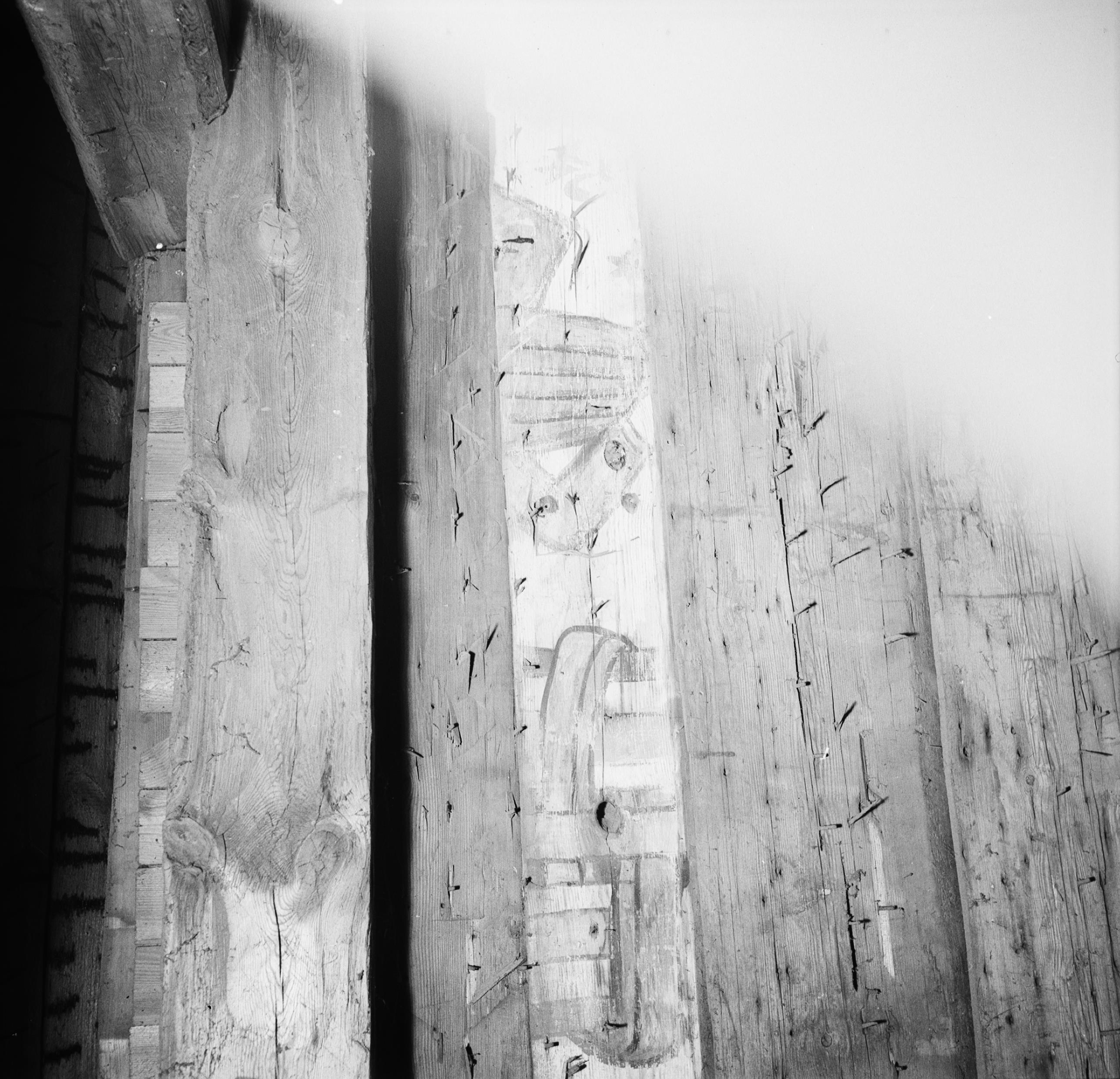 Beskrivning: Klockstapeln, bräda från Visnums gamla kyrka.