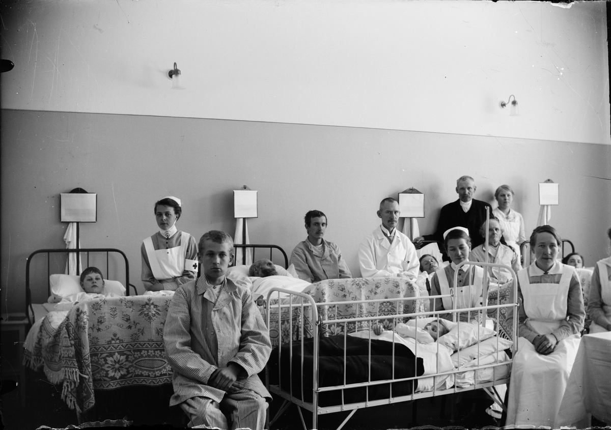 Sjuksal med patienter och sjukvårdspersonal, Östhammars lasarett, Uppland