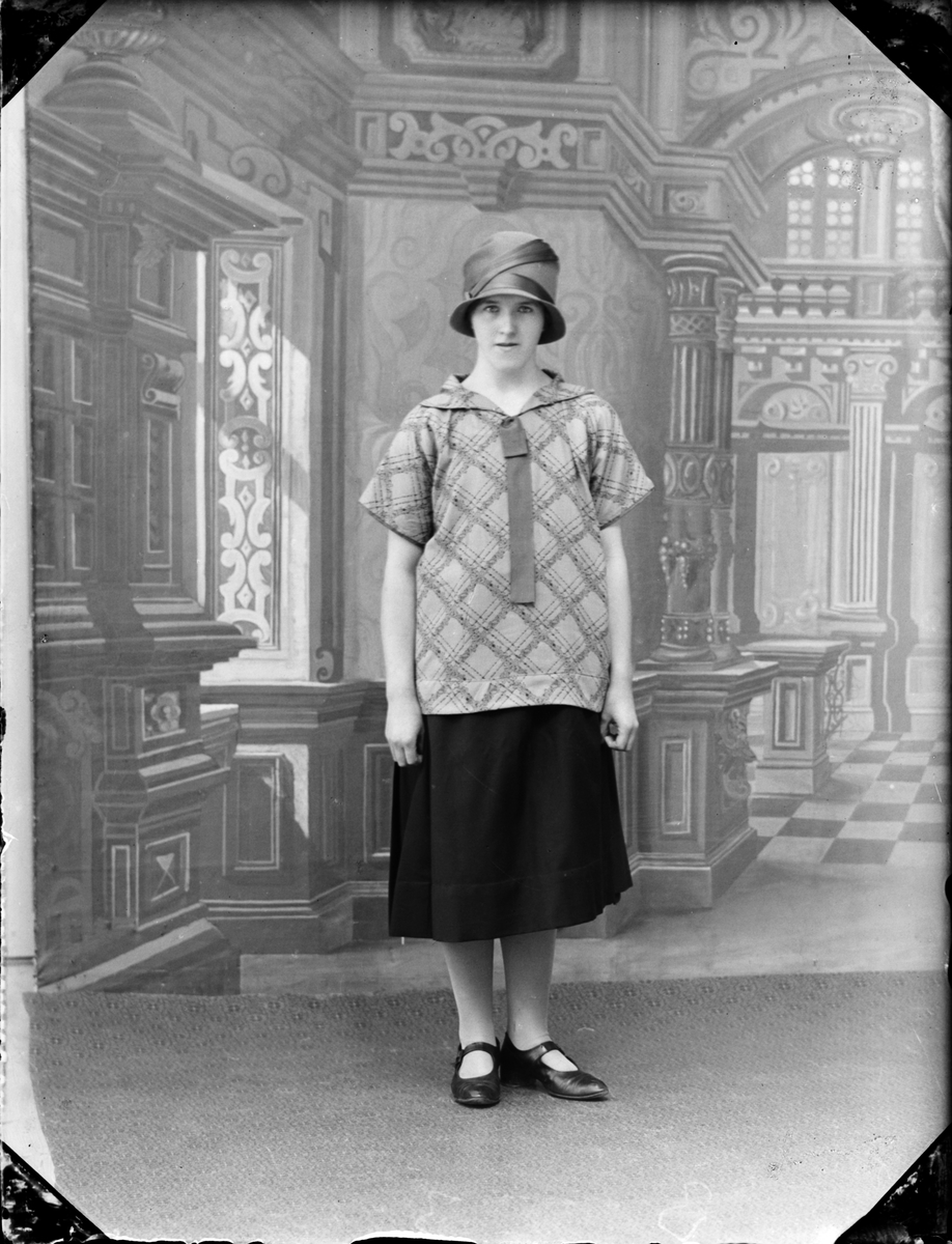 Ateljéporträtt - kvinna i hatt, Östhammar, Uppland