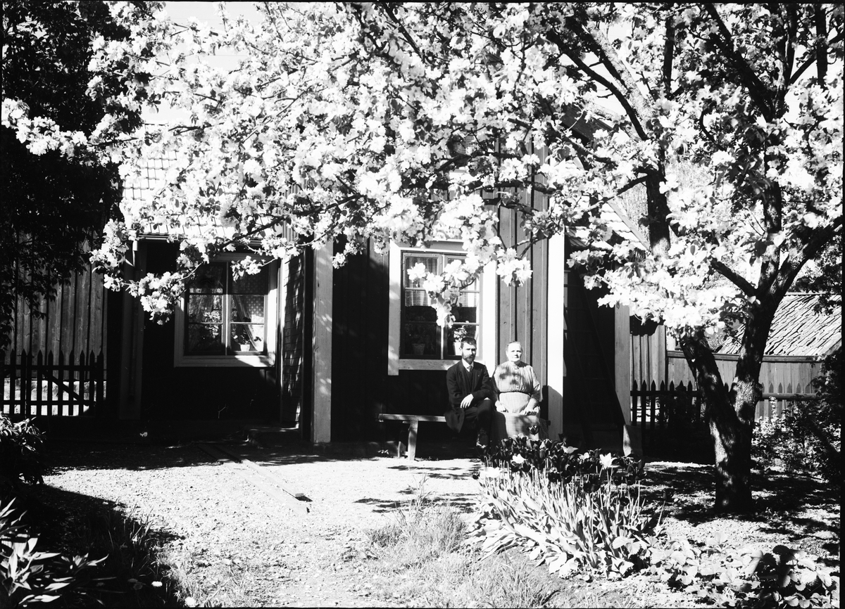 Man och kvinna sitter på bänk, Östhammar, Uppland