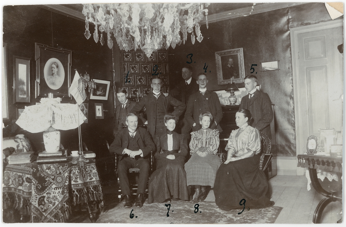 Friherrinnan Lydia Cederström med barn och inackorderingar, Cederströmska salongen, Järnbrogatan 10, Uppsala vårterminen 1907