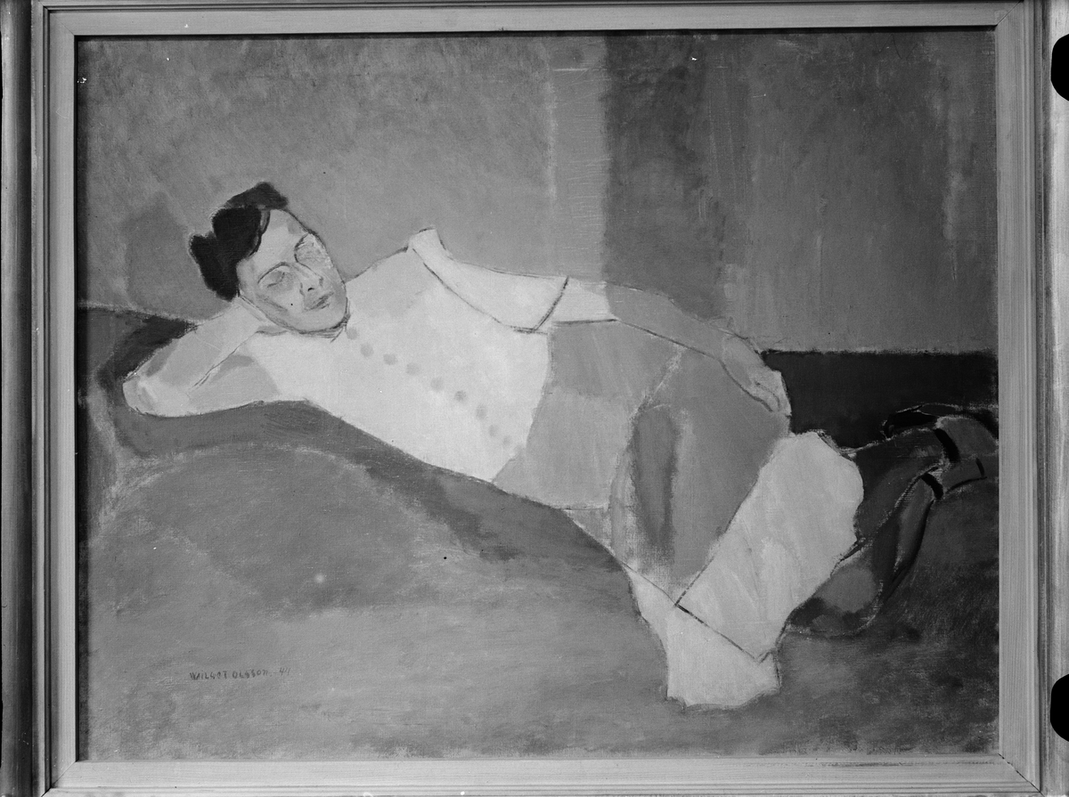 Oljemålning signerad Wilgot Olsson, på konstutställning med Göteborgskolorister anordnad av Upplands Konstförening, Östgöta nation, Trädgårdsgatan 15