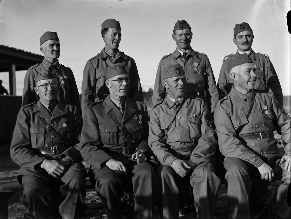 "Medaljörerna vid invigningen" av den nya skytte- och hemvärnsstugan