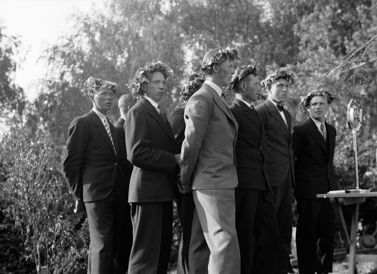 Deltagare i festspelet på Svenska Landsbygdens Ungdomsförbunds riksting i Gamla Uppsala