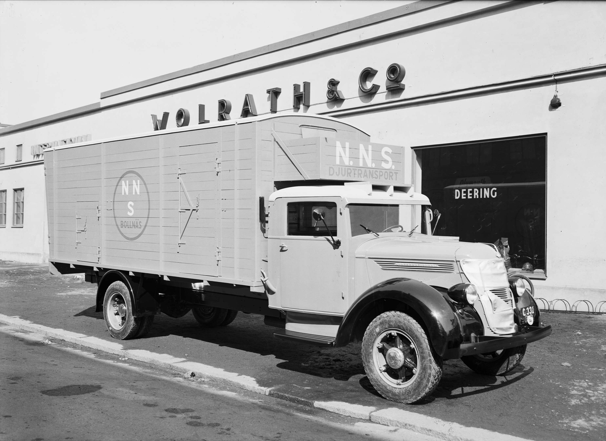 Lastbil International utanför AB Wolrath & Co, Väderkvarnsgatan, Uppsala april 1940