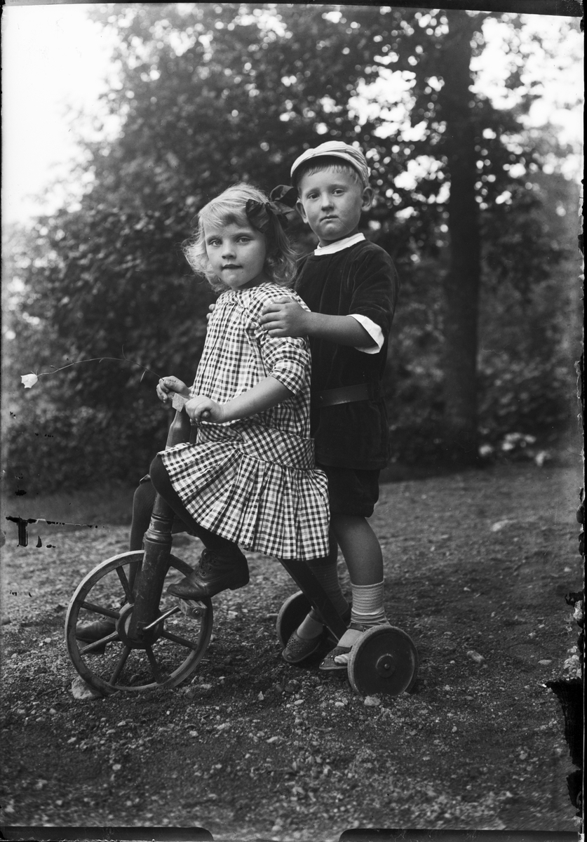 Två barn på en trehjuling, Krusenberg, Uppland