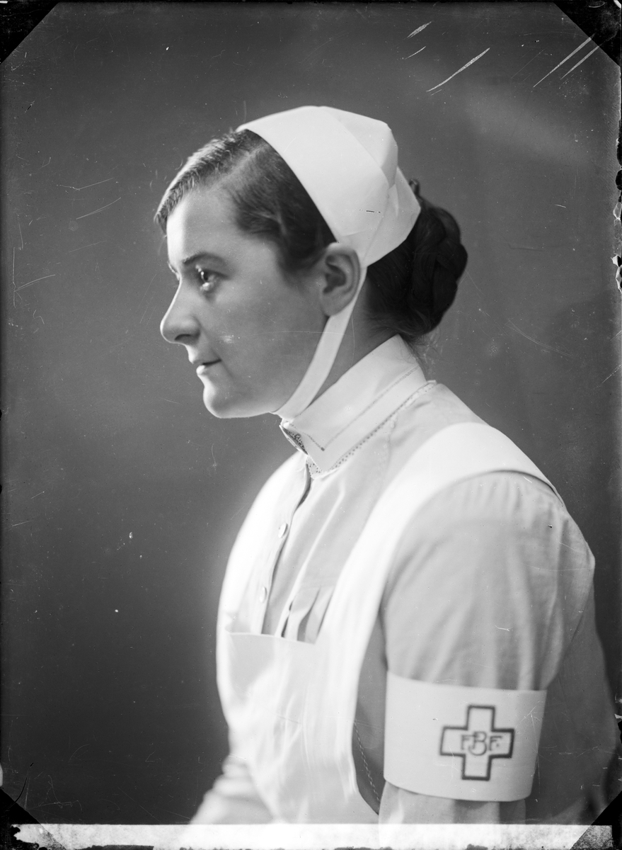 Ateljéporträtt - kvinna i sjukvårdsuniform, Östhammar