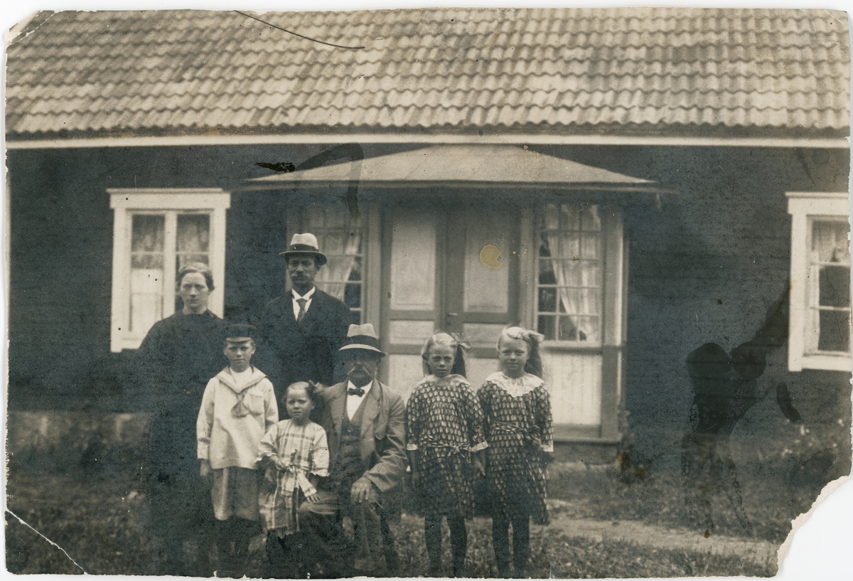 Familjen Sundqvist utanför hemmet, Tjälinge, Uppland 1924