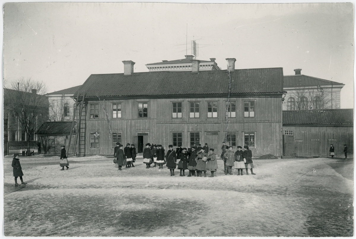 Prinsens folkskola - barnhuset med småbarnsskola och arbetssalar för folkskolans pojkar, Uppsala omkring 1900