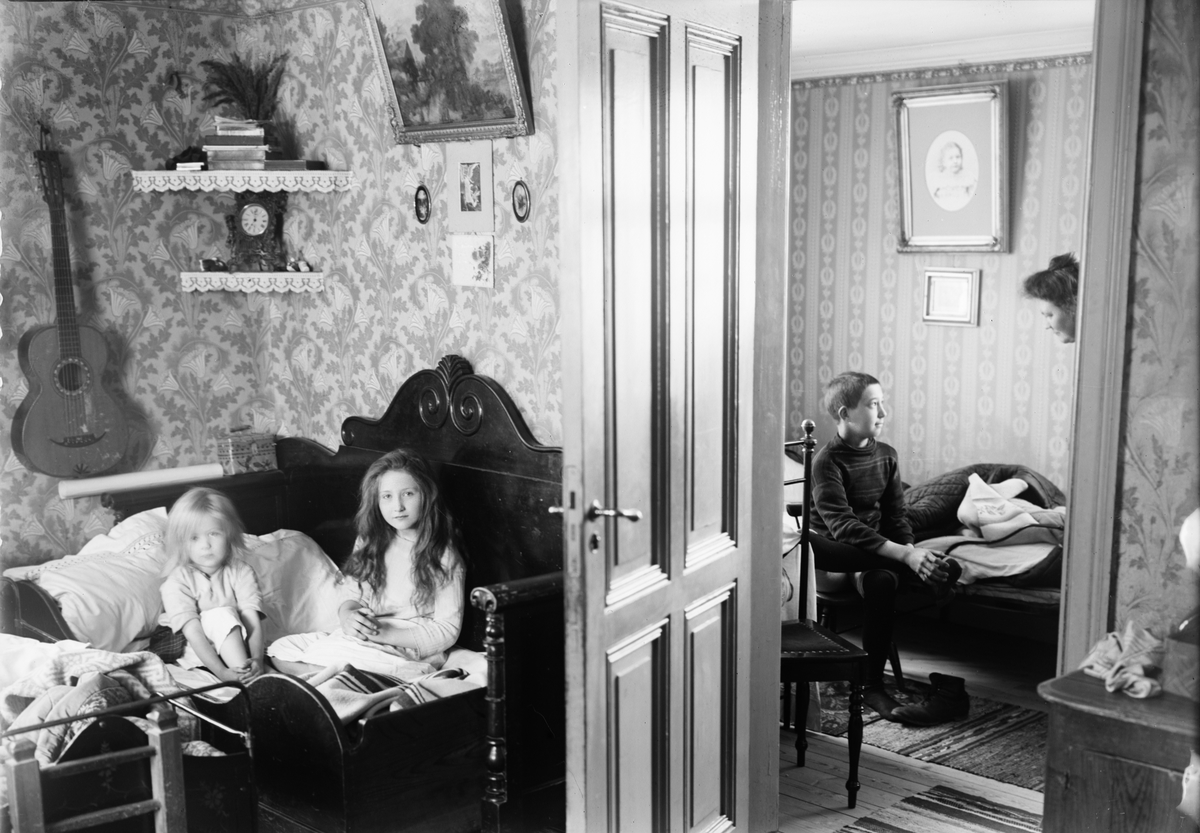Tyra, Sara, Josef och Brita Edhlund i hemmet, Guldskärskvarteret 25, Östhammar, Uppland