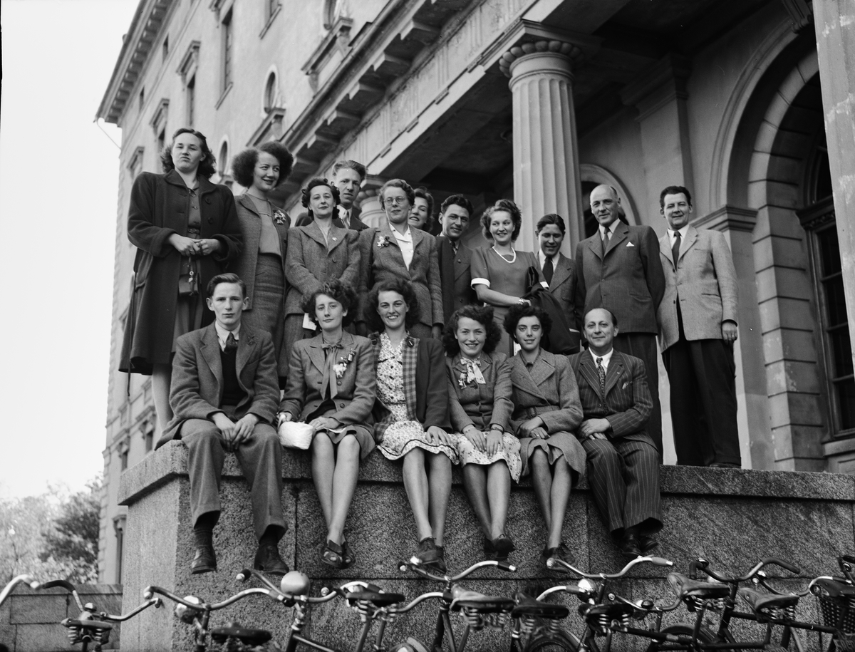 "Unga engelska kooperatörer på upsalabesök i går", Carolina Redivivas trappa, Uppsala september 1947