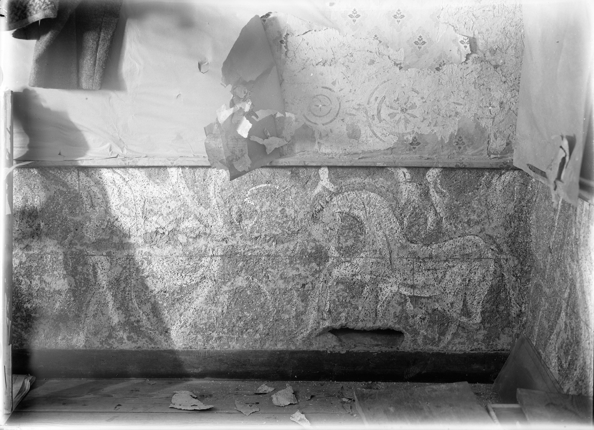 Panelmålning på lerbruk, Janssons, Nyvla, Bälinge socken, Uppland, sannolikt 1920-tal