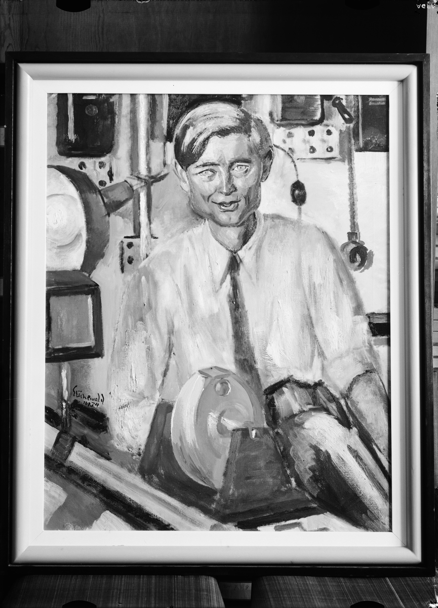 Oljemålning - konstnären Isaac Grünewalds porträtt av professor The Svedberg, placerat i Fysikalisk-kemiska institutionens bibliotek