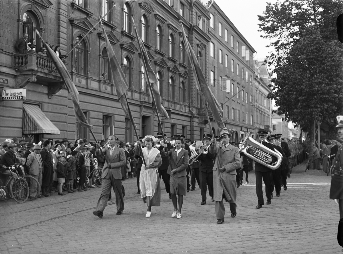 Medborgartåget på väg från Vaksala torg till nationaldagsfirandet på Studenternas Idrottsplats