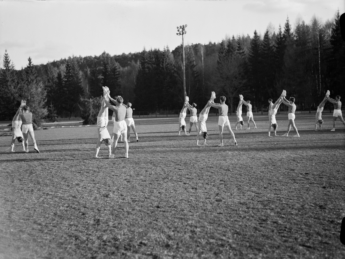 "Studenternas elitgymnaster ge uppvisning" vid återinvigningen av Studenternas Idrottsplats