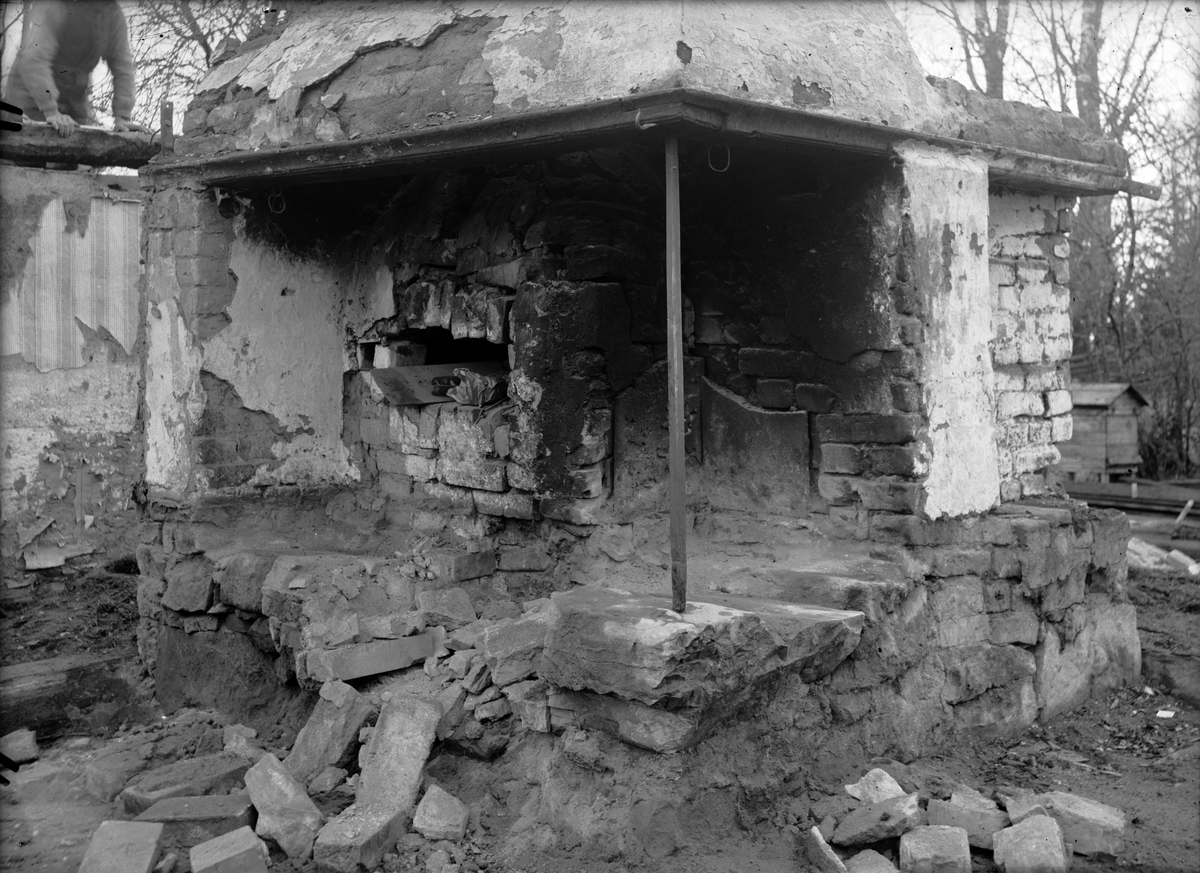Skuttungestugans köksspis, i samband med nedmontering, Ytterby, Skuttunge socken, Uppland